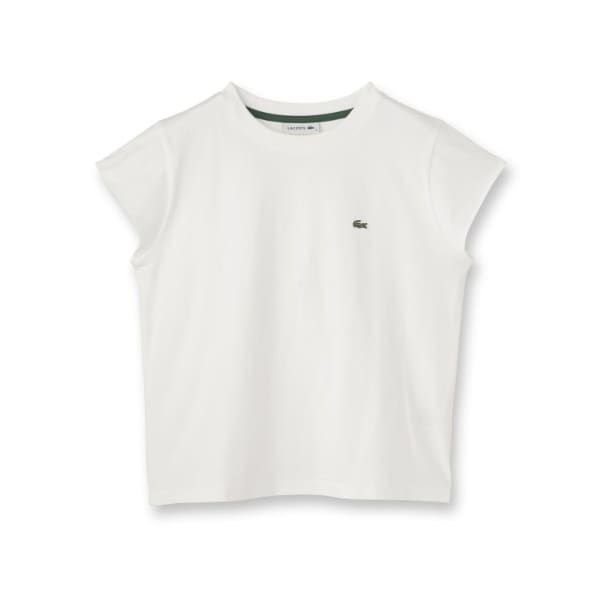 ・シンプルなクルーネックTシャツの肩口をキャップスリーブでフェミニンに