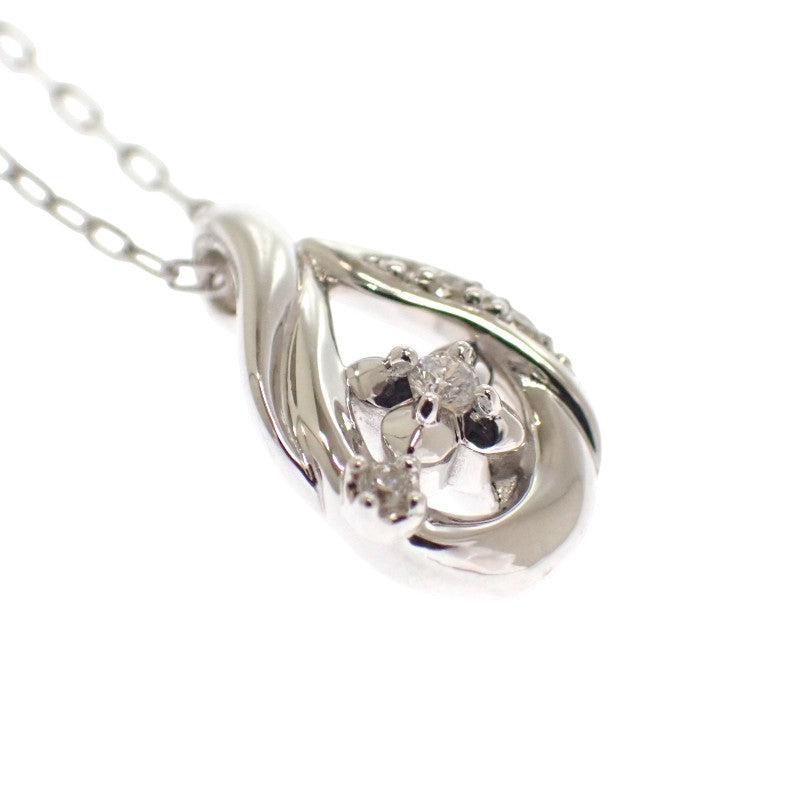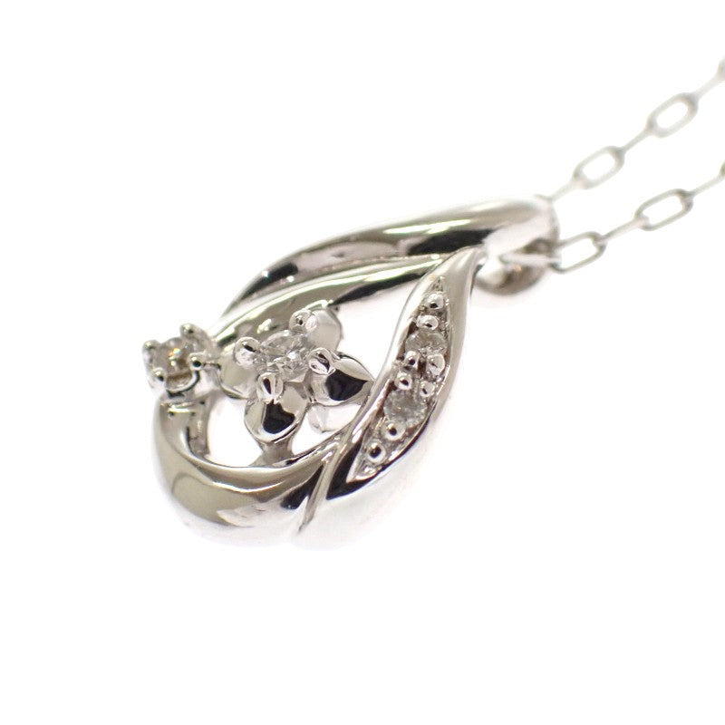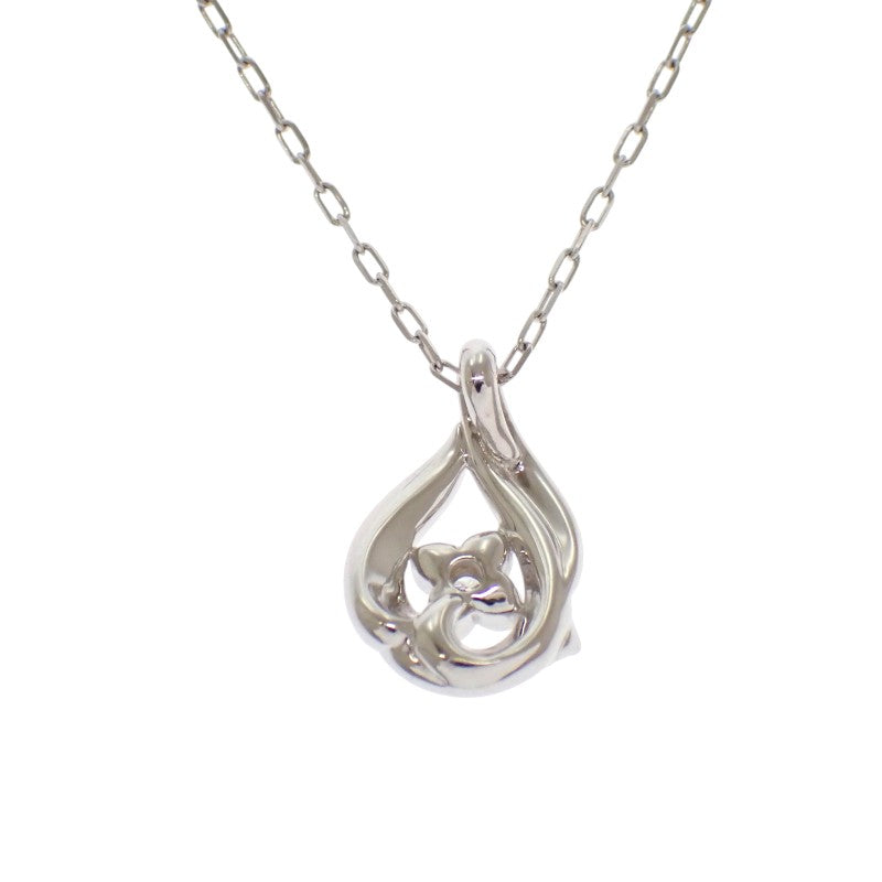 雫型のフレームに小さなフラワーモチーフ、ダイヤモンドが配されており、控えめなサイズ感ながらも胸元にエレガンスな雰囲気を纏わせます。