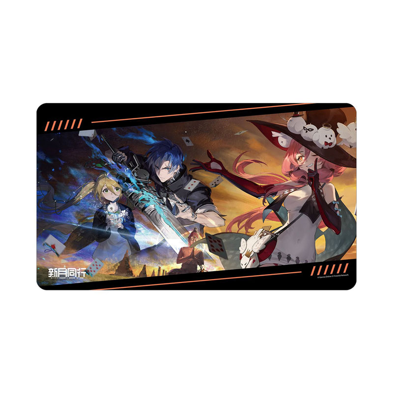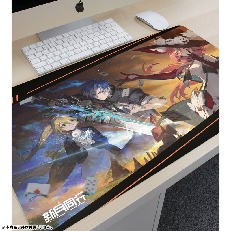 『新月同行』より、マルチデスクマットの登場です。 キービジュアルをマルチデスクマットに仕上げました。 デスクに敷いたり、お部屋に飾ったり、キャラクターとの日常をお楽しみください。