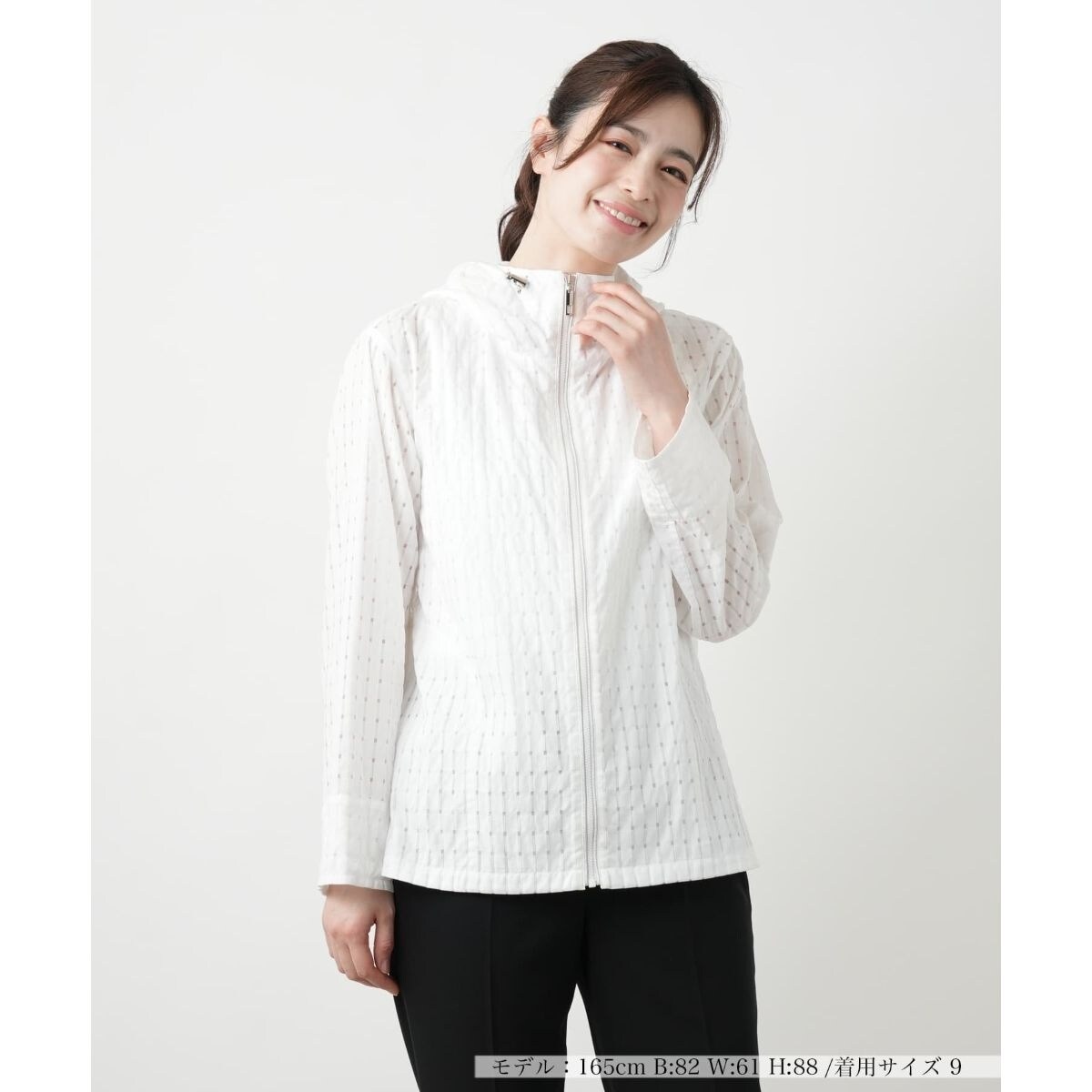 透け感のあるシアーなチェックがさりげなくセンスを引き立てる、軽く爽やかな着心地のフーデッドジャケット。やや薄手のコットン×ナイロン素材を使用しており、さらりと羽織れるライトな仕立て。フロントはファスナー開閉で、首元までしっかり閉じられる仕様です。カジュアルなスタイルにさっと取り入れやすく、ちょっと肌寒さを感じる日の温度調節にも便利な羽織りアイテムです。