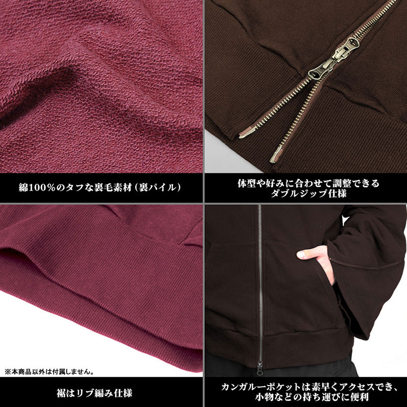 ・綿100%のタフな裏毛素材(裏パイル)。吸水・吸湿性に優れているので長時間着用しても快適。