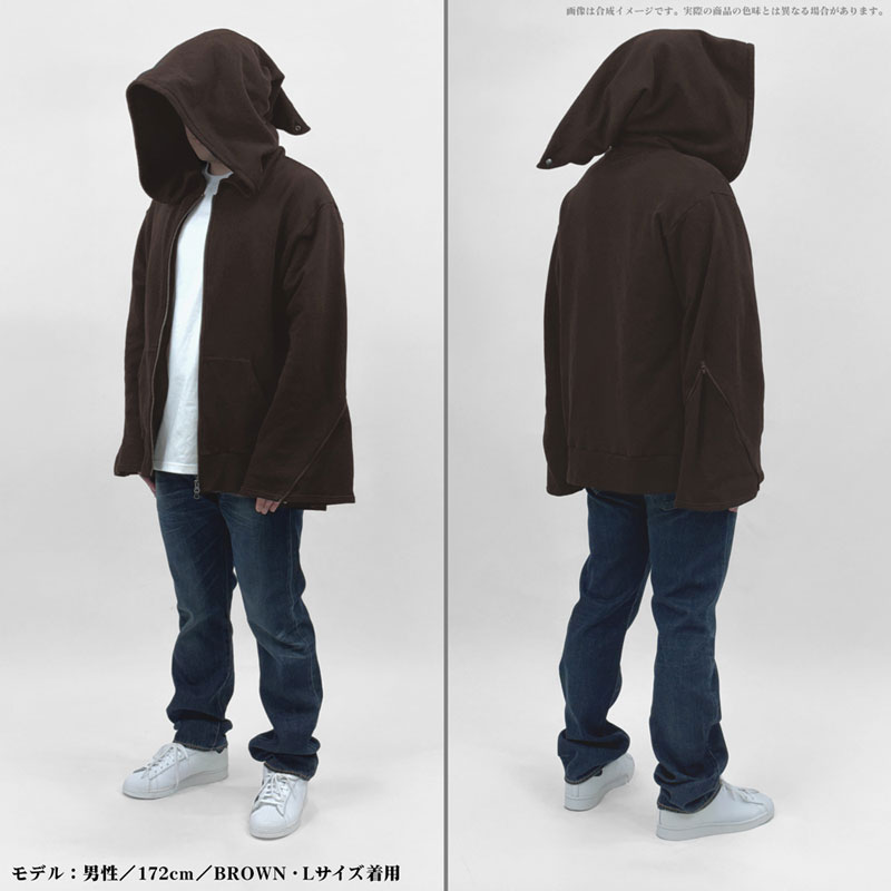 ・魔術師のような大型のフードはスナップボタンでボリューム調整可能。