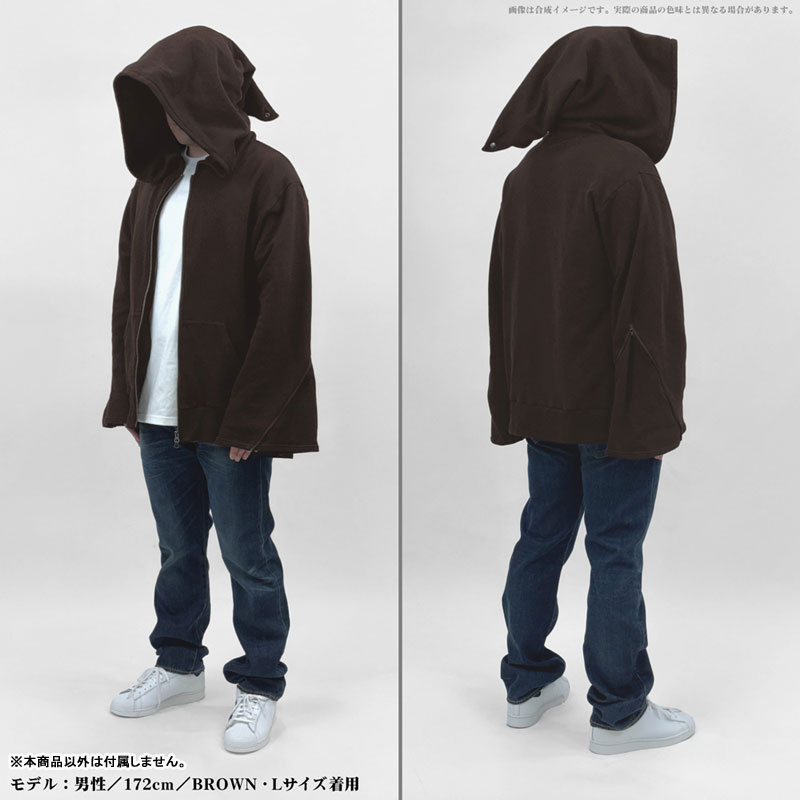 ・魔術師のような大型のフードはスナップボタンでボリューム調整可能。