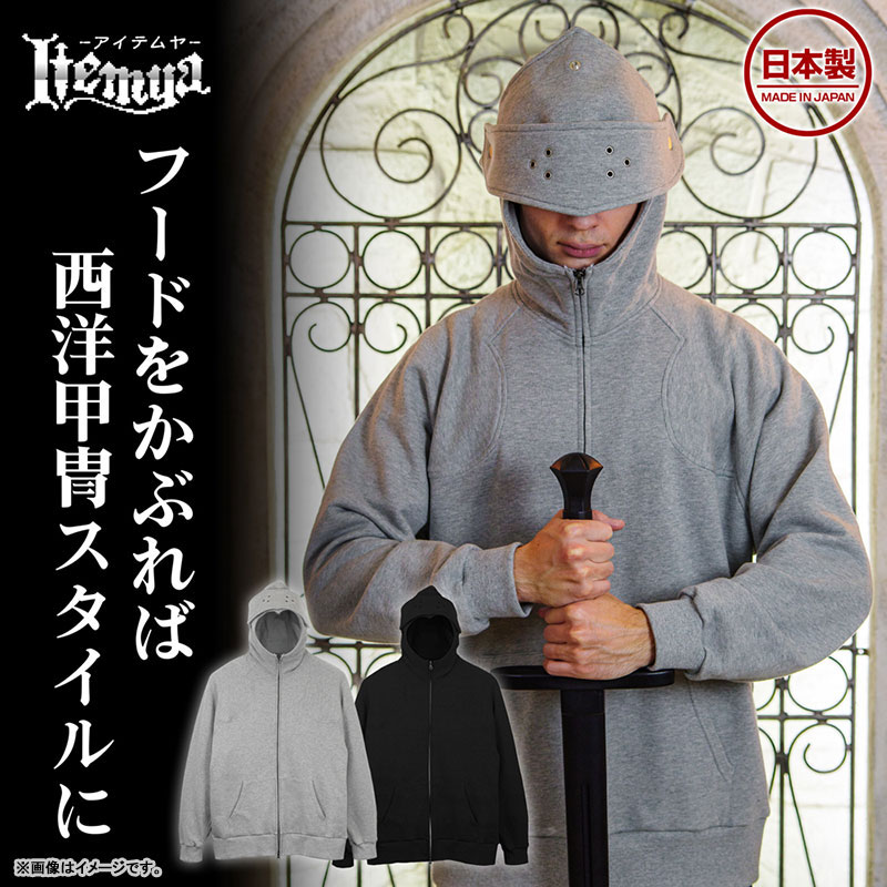 フードをかぶれば西洋甲冑スタイルに。
