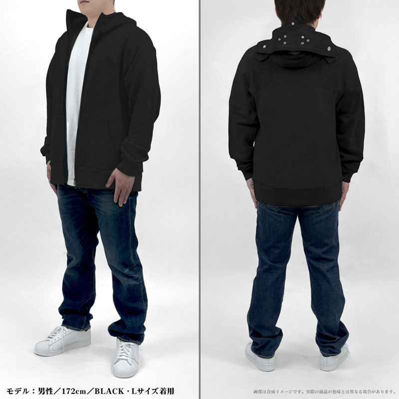 ・西洋の兜をイメージし設計されたフードのバイザーは額・目元・口元の三段階の位置に調整でき取り外しも可能。