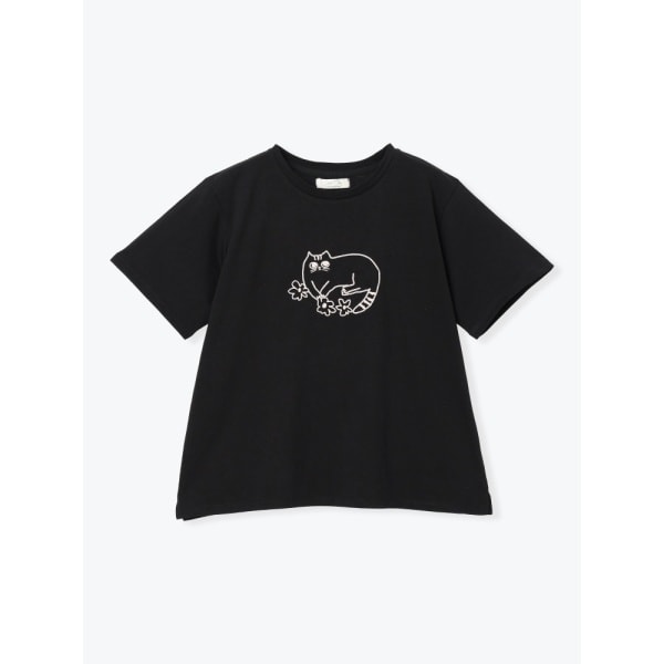 フロントにあしらったネコの刺繍が目を惹くTシャツ。