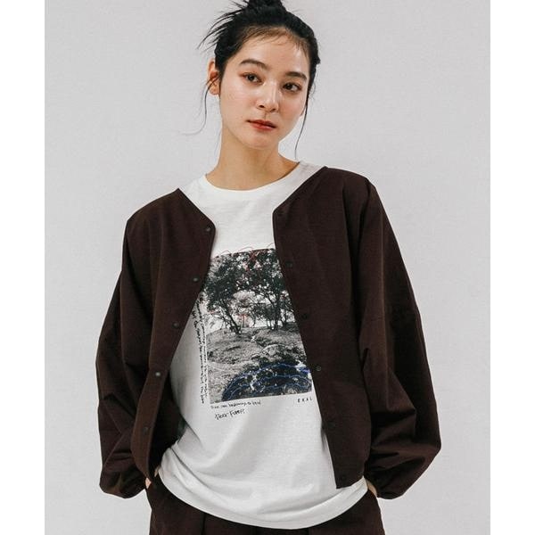 ポリエステルコットンの空紡糸を使用した天竺編み生地を使用。ドライでざっくりとしたドライな風合いが特徴。吸汗性・速乾性にも富み、夏にはぴったりな素材です。ブランドの象徴でもあるタイニーガーデン蓼科の森の風景を染み込みプリントしたオリジナルフォトTee。今回はその中にシカを佇ませております。ぜひシカを探してみてください。写真を落書き風にアレンジしたデザインを今季は少しポップに仕上げました。どんなボトムにも合わせやすく1枚で様になるTシャツです。