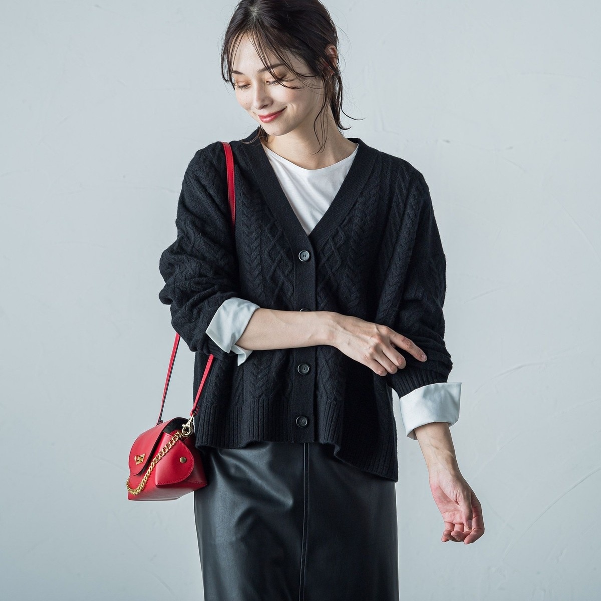 新品タグ付匿名ケーブル編み薄手カーディガン XLブラック