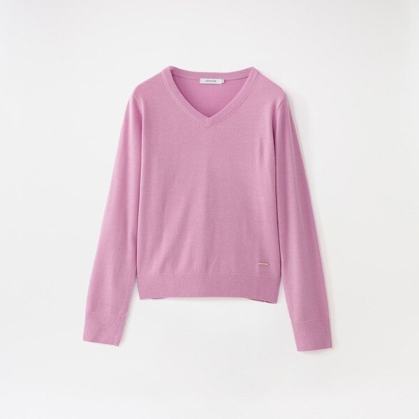 デコルテを美しく見せてくれるVネックデザインが、衿回りをスッキリとした印象に。