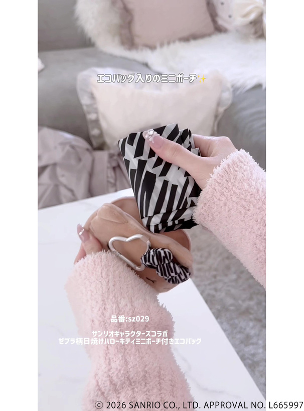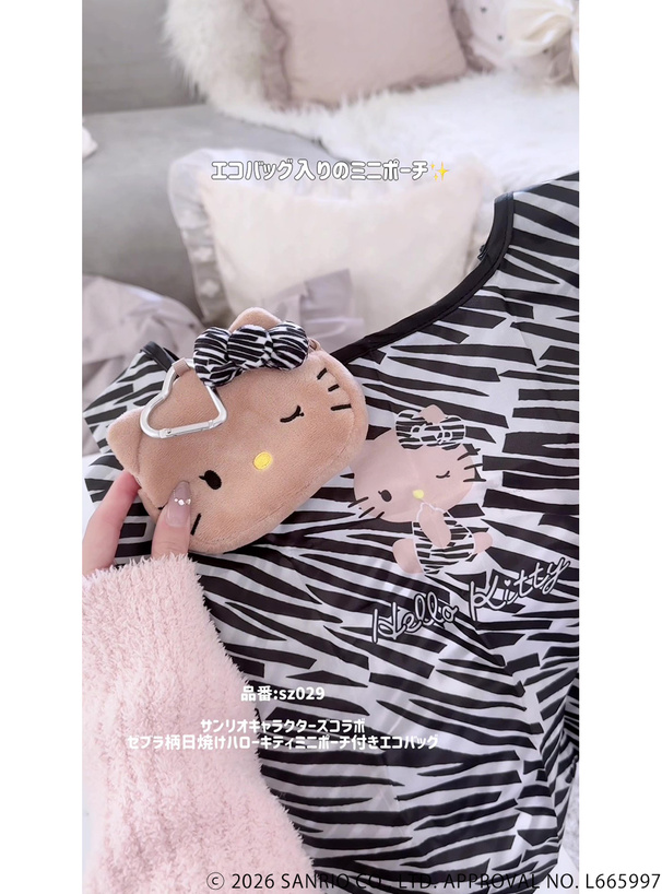 こんがり小麦色に日焼けをしたハローキティが目を惹く、便利なミニポーチ付きのエコバッグ。