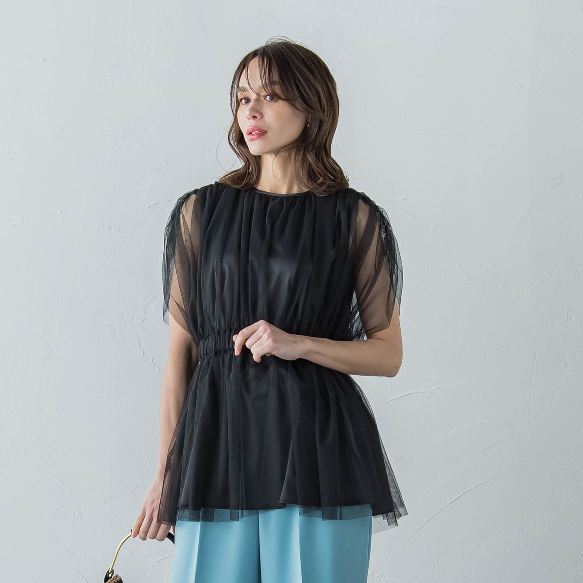 【タグ付き新品】【半額以下】ギャザーチュールブラウス アイボリー