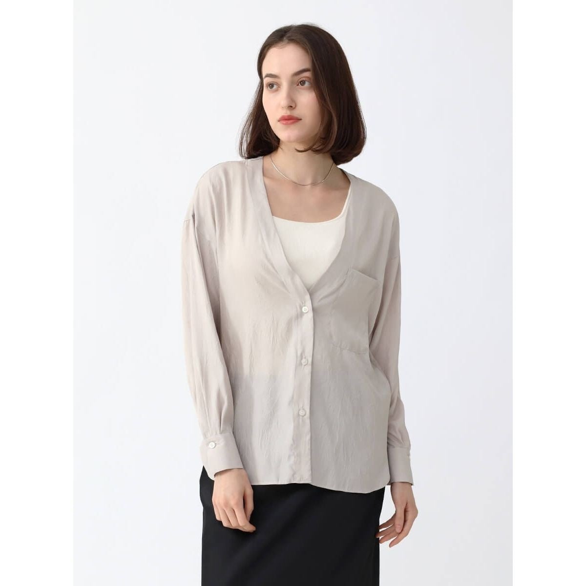 デイリーでのシャツスタイルもどこか品のある大人らしい着こなしに仕上がるシャツ。深めのVネックラインが首元、デコルテラインをすっきりと見せ華奢見え効果も。滑らかな肌触りと軽さが快適な着心地を実現。1枚あればプルオーバーからちょっとした羽織りまで重宝してくれる汎用性の高いアイテムです。