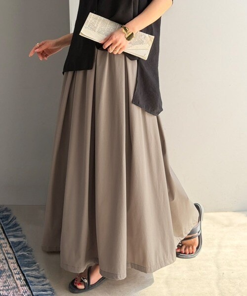スカート ミドル丈 フレア ベージュ ひざ丈 アースミュージックアンドエコロジー