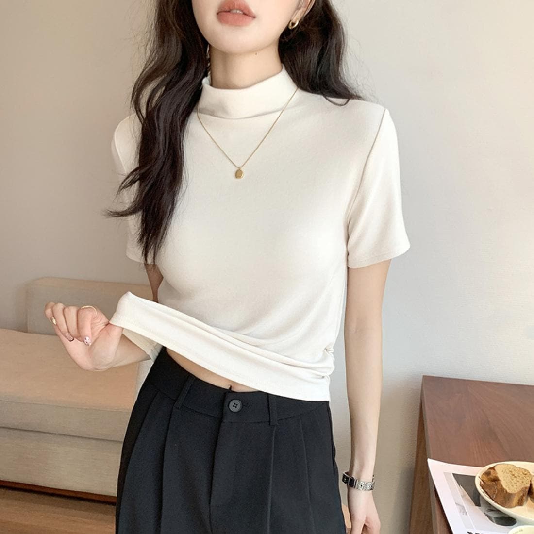 きちんと見えするきれいめ半袖ハイネックトップスが登場♪<br>