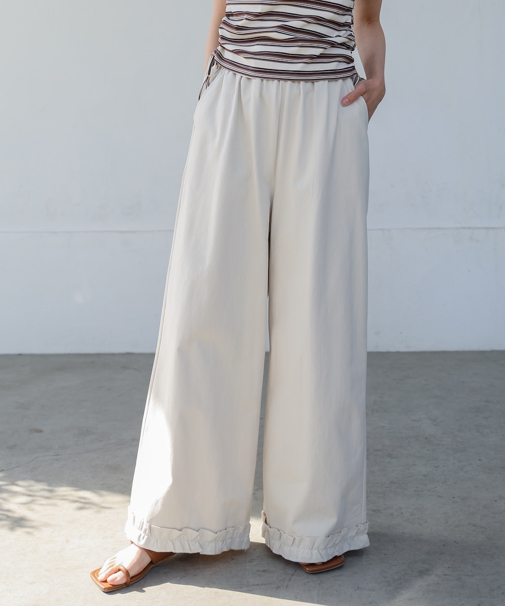 新品 スナイデルホーム ドビードットコットンヘムフリル ロングパンツ SNIDEL HOME