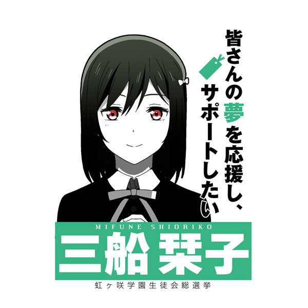 『三船栞子』さんの立候補を記念し、選挙ポスターがTシャツになりました! 皆さんの清き一票をよろしくお願いします!