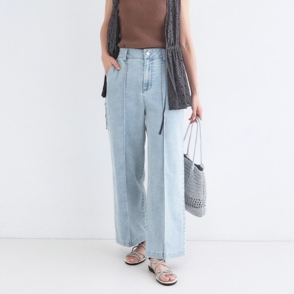 ライトブルー ワイドデニムパンツ ウエストゴム