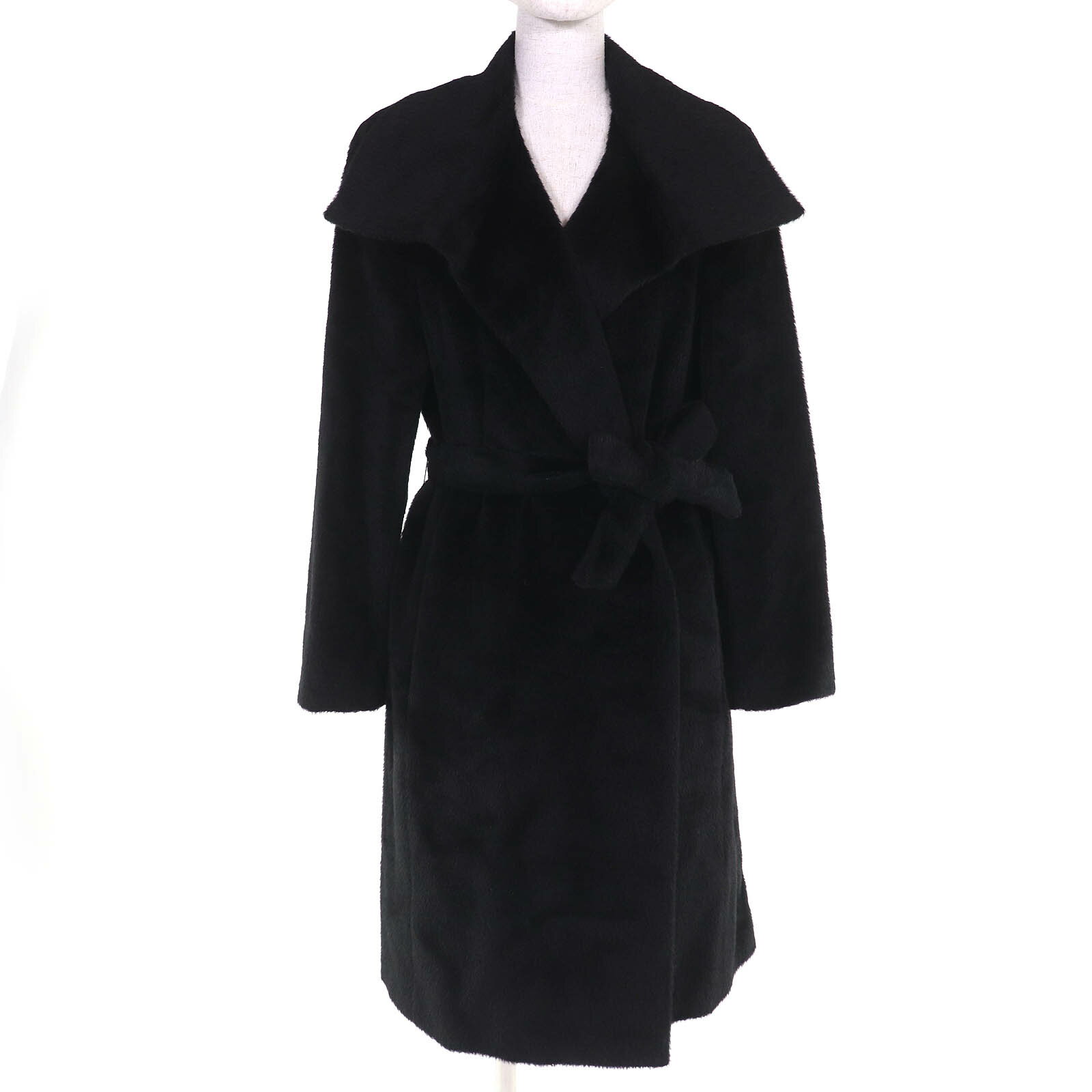 極美品★Max Mara マックスマーラ カシミヤ100% 白タグ Cucito A Mano コート アウター ブラック 40 イタリア製 正規品 レディース【中古】