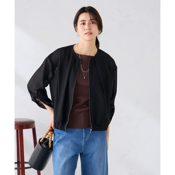 カーディガン感覚で着回していただける、透け感が涼し気なメッシュブルゾン。