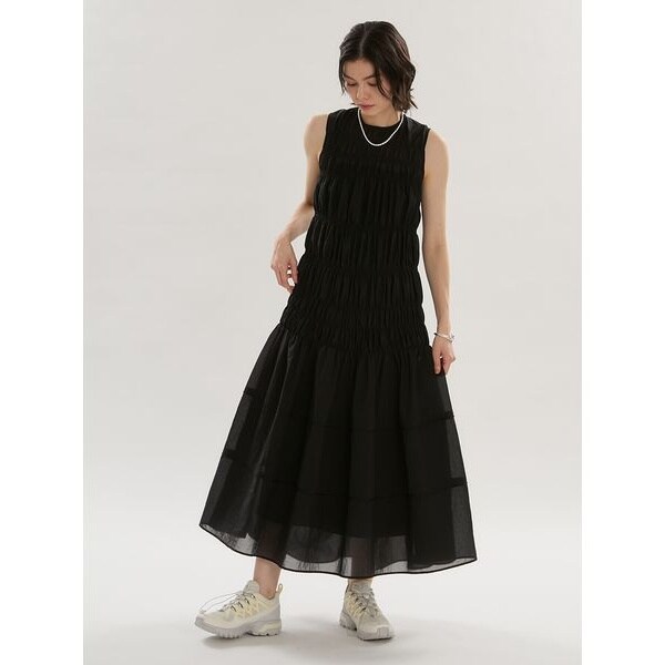 【新品タグ付】シャーリングギャザーノースリーブワンピース