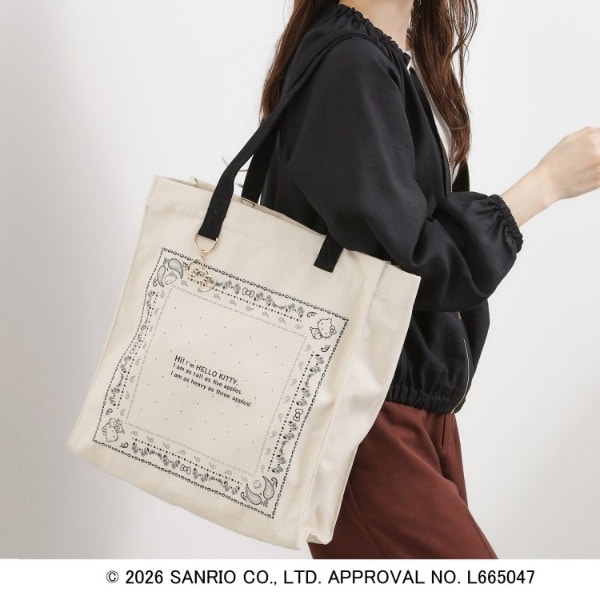 ハローキティ キャンバス製 トートバッグ(両サイドポケット、ファスナー付き)