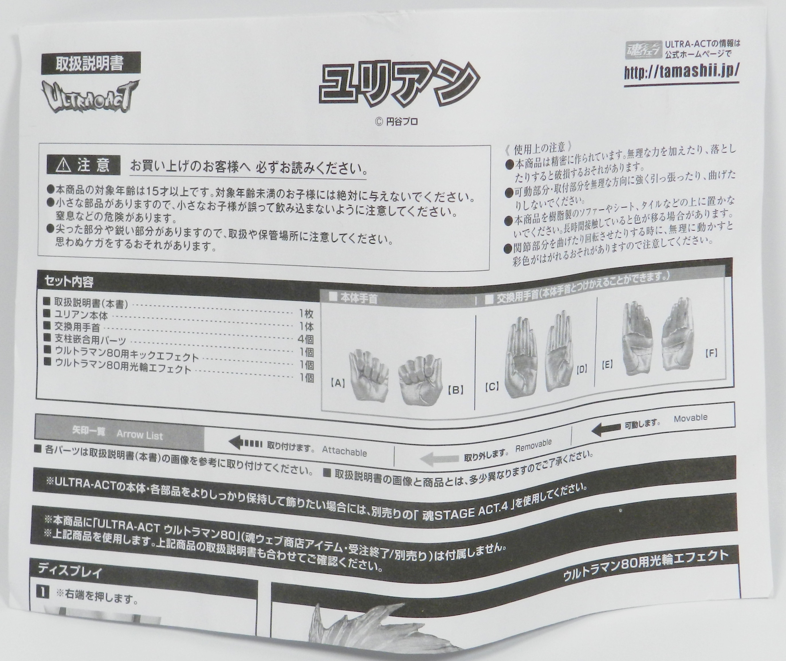 ウルトラアクト ゾフィー メビウススペシャルとブラザーズマント 説明書に3箇所切れ有