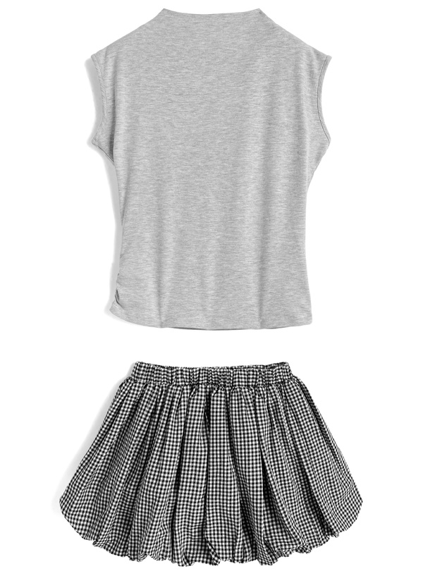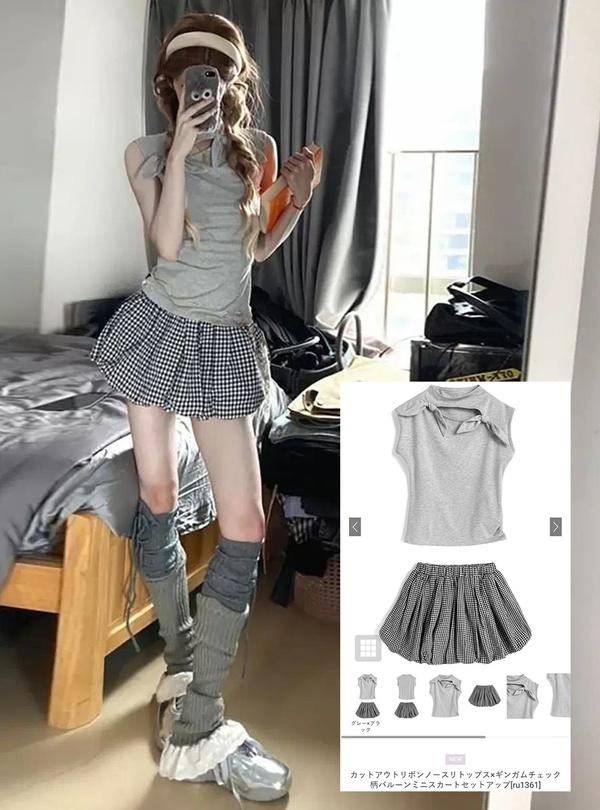 ガーリールックが即完成する、ノースリーブトップスとミニスカートのセットアップ。
