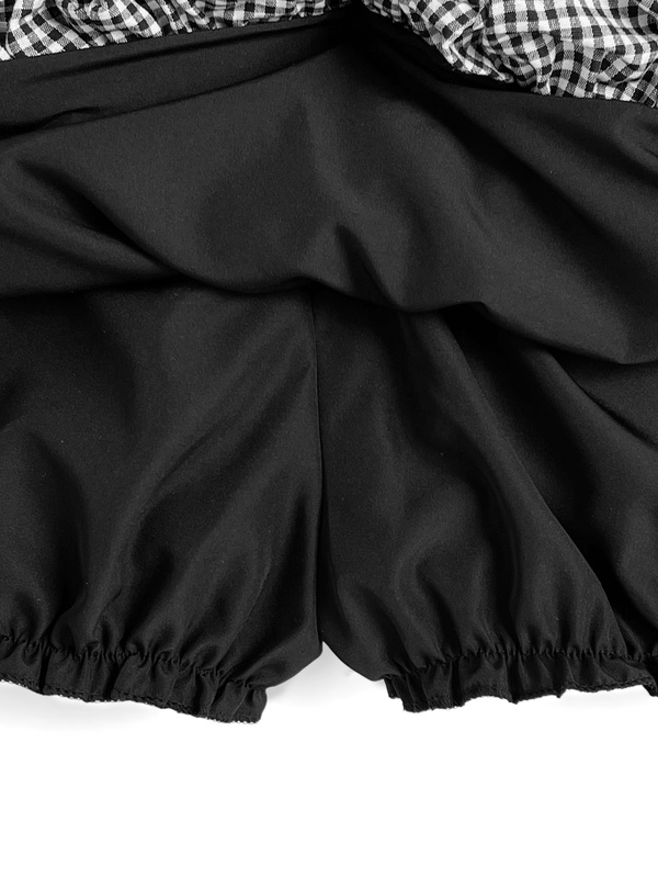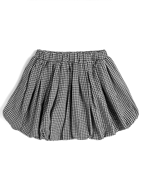 ギンガムチェック柄のミニスカートは、ボリュームたっぷりのバルーンシルエットが愛らしい雰囲気。