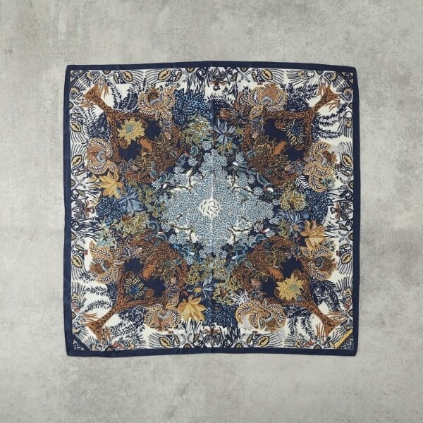 ダークトーンのバックグラウンドが、華やかな花柄を一層引き立て、コーディネートに洗練さをプラスします。