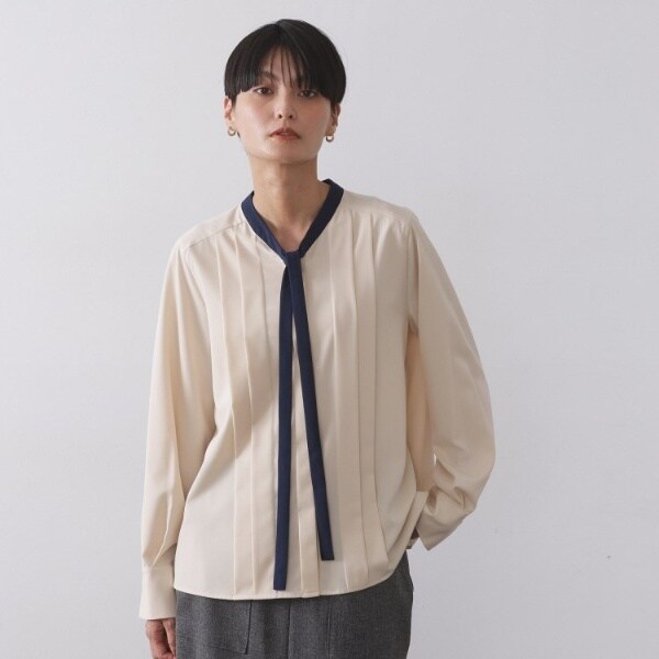 バイカラーのタイデザインが上品なブラウス