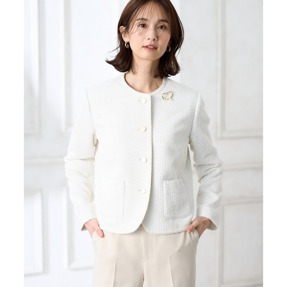 ノーカラーツイードジャケット
