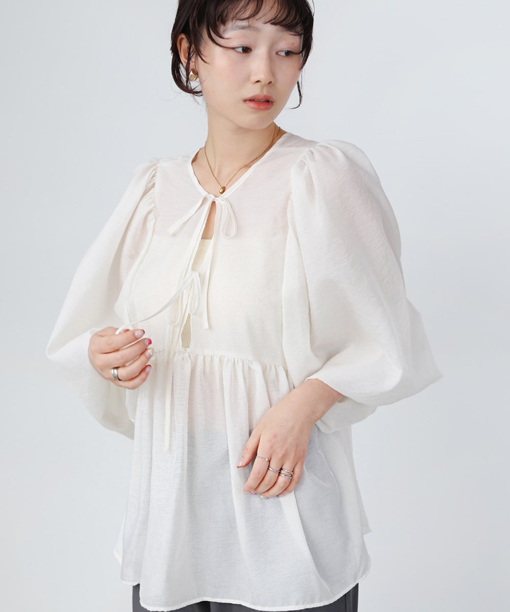 前後2WAY袖ボリュームリボンブラウス