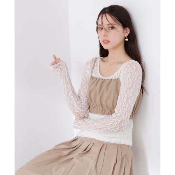 繊細なギャザーが可愛いちびビスチェ。コンパクトなシルエットで、いつものコーディネートに旬なアクセントをプラスします。インナーにシンプルなカットソーを合わせがおすすめ。肩紐は長さ調節可能でフィット感もあります。同素材のプリーツスカートと合わせれば、統一感のあるお洒落なセットアップコーデが完成します。