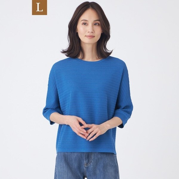 ドルマンシルエットが気になりがちな二の腕やウエストラインをカバーし、デイリーユースに重宝する一枚です。タック編みの一種で凸凹のある表面感が特徴です。ニットならではの質感でカジュアルになりすぎずキレイ目に着ていただけます。
