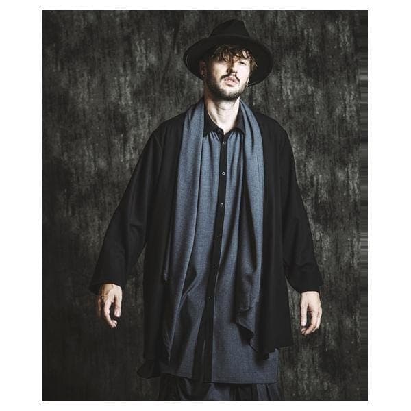 襟元・肩・ウエストに配置されたボタンによって自在にシルエットを変えられる、人気のドレープガウン。オーバーサイズのゆとりあるシルエットが動きとともに美しい揺れを描き、着こなしに奥行きを与えます。ドローストリングスレイヤードバギートラウザーズやクレリックギャザーロングSHとセットアップすれば、統一感のあるモードスタイルが完成。