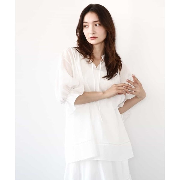 VIS オープンショルダーシアーチュニックブラウス ホワイト