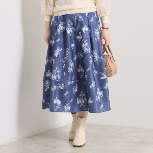 【手洗い可/日本製/ウエスト後ろゴム】フラワー柄フレアスカート