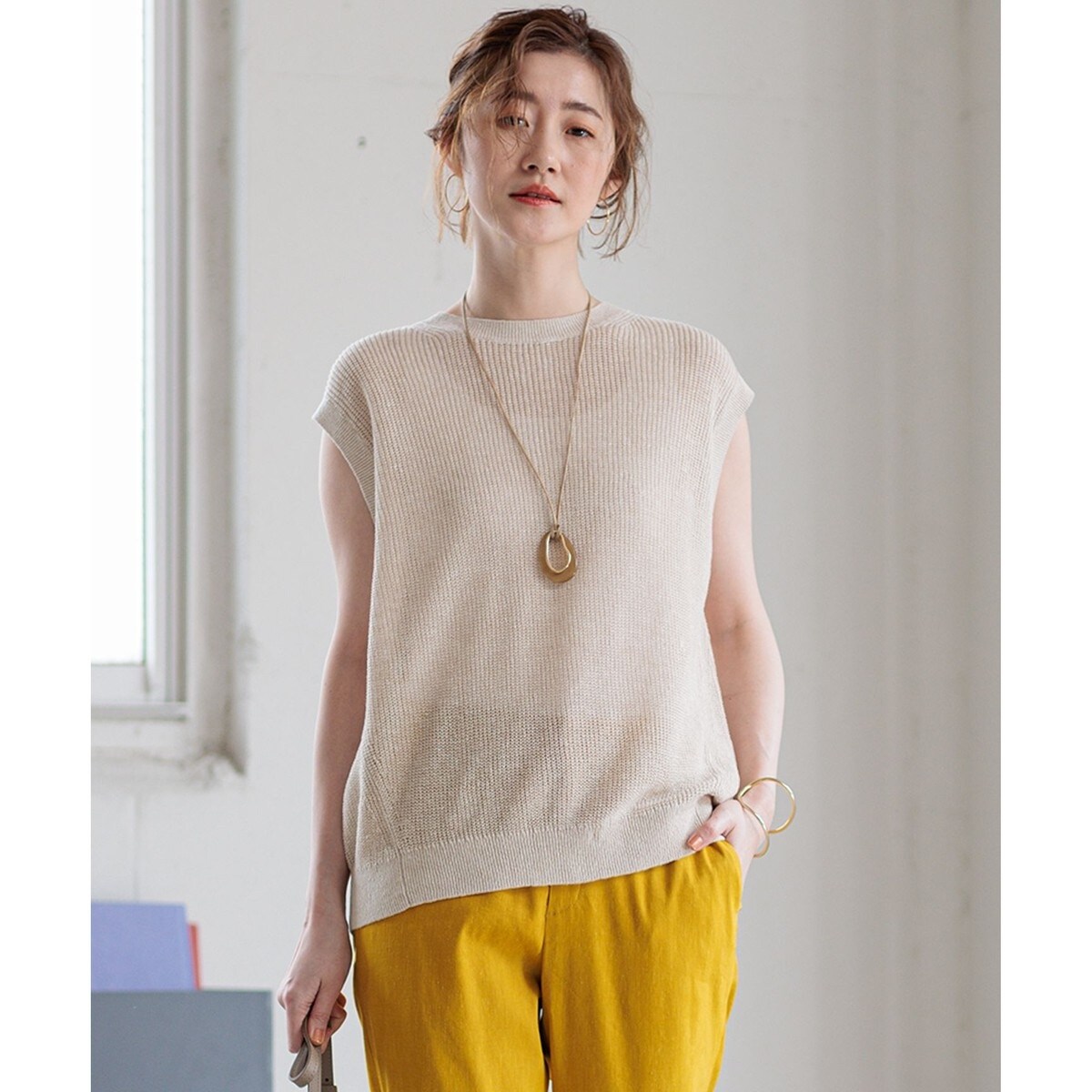 ピュアリネン パフスリーブ ニット(品番:KRWOCM0455)
