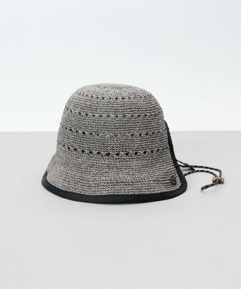 後ろつばが首に当たらないボンネット型の手編み天然ハットです。ドローコードにバタフライモチーフのビーズを使い可愛らしく仕上げました。ドローコードが取り外しできるのでシンプルに被る事もできます。
