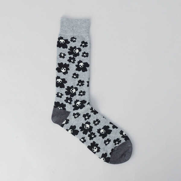 男性にも年齢に関係なくさり気なく花柄を…可愛らしくポップな花柄でデザインされたクルーソックスです。