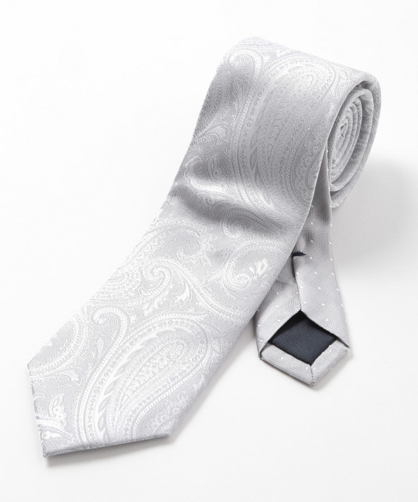 大剣にシャドーペイズリー柄、小剣にドット柄を採用したシルクネクタイ。