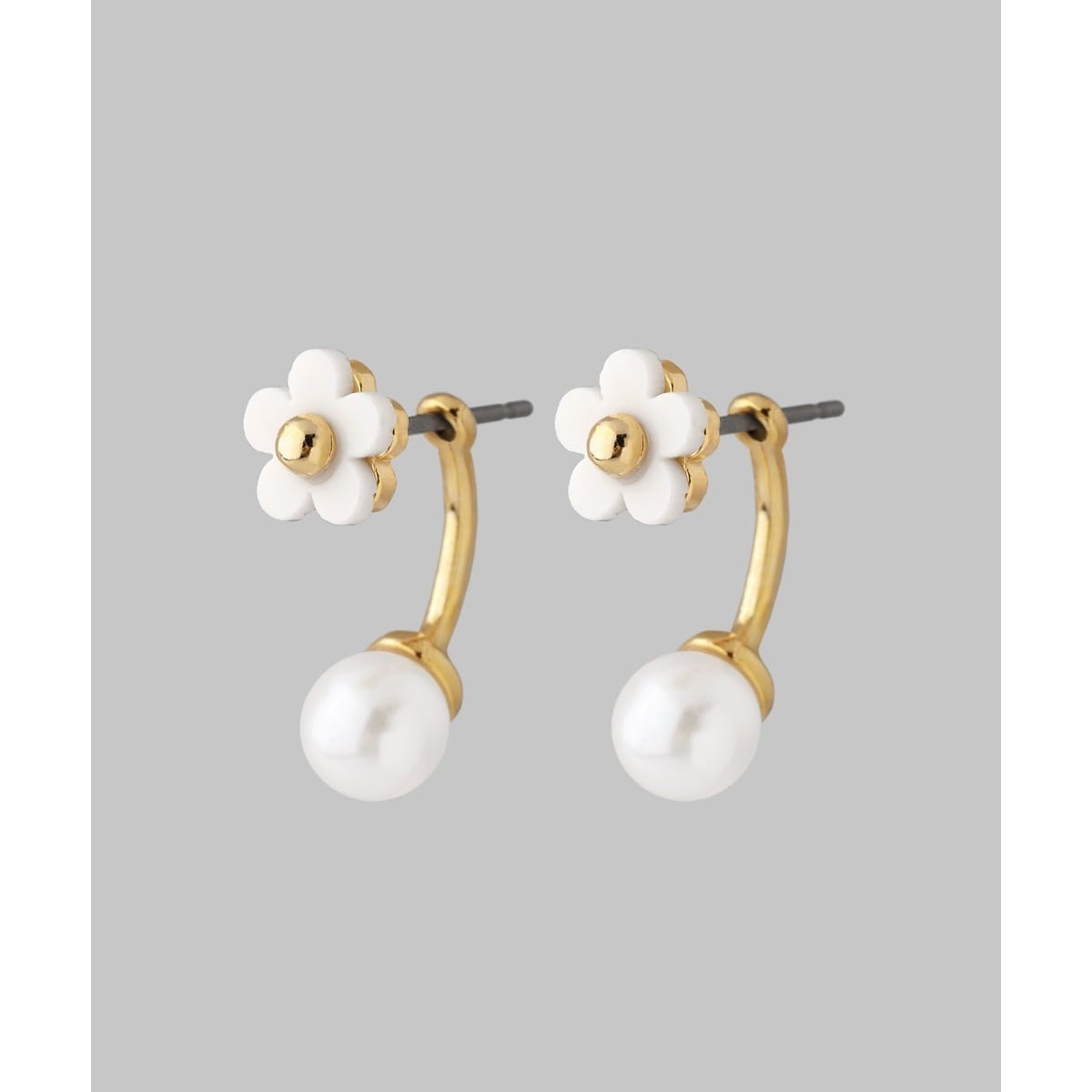 2way 花 ピアス 両耳 白 ホワイト バックキャッチ フラワー パール 両面