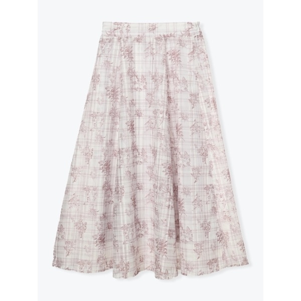 上品なシアー素材にチェック柄×花柄を組み合わせた大人可愛いスカート。