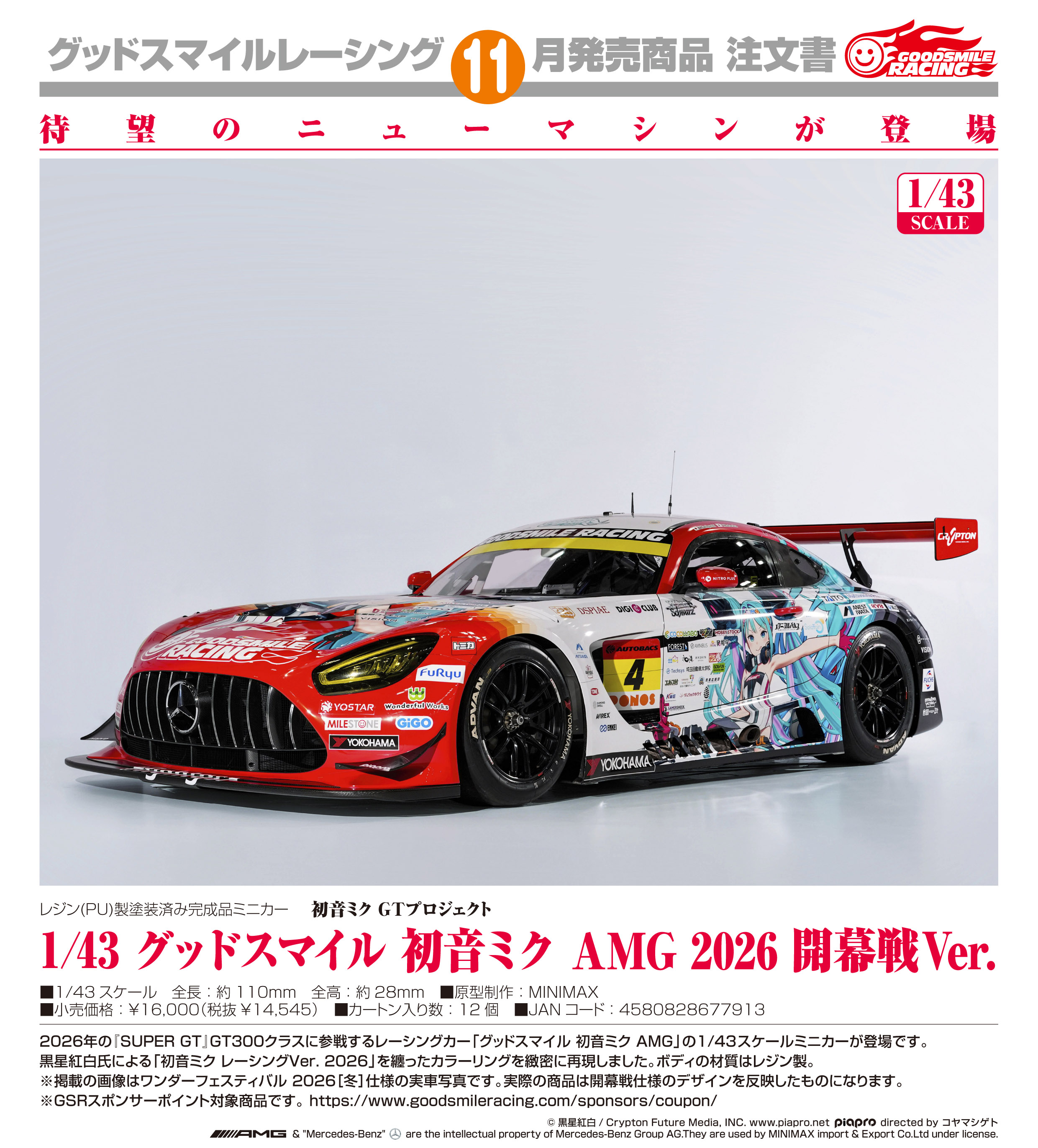 『初音ミク GTプロジェクト』1/43 グッドスマイル 初音ミク AMG 2026 開幕戦Ver.
