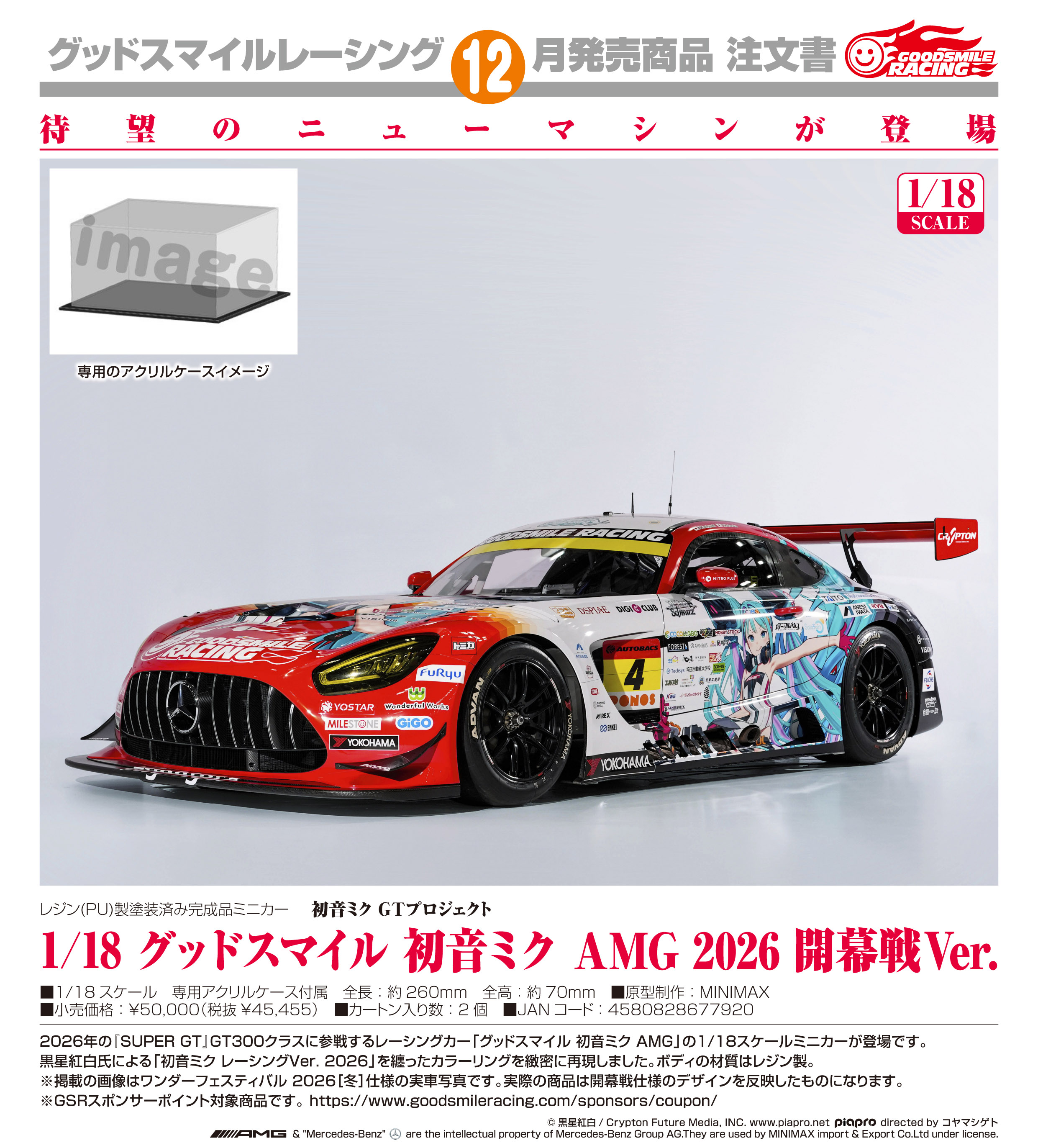 『初音ミク GTプロジェクト』1/18 グッドスマイル 初音ミク AMG 2026 開幕戦Ver.