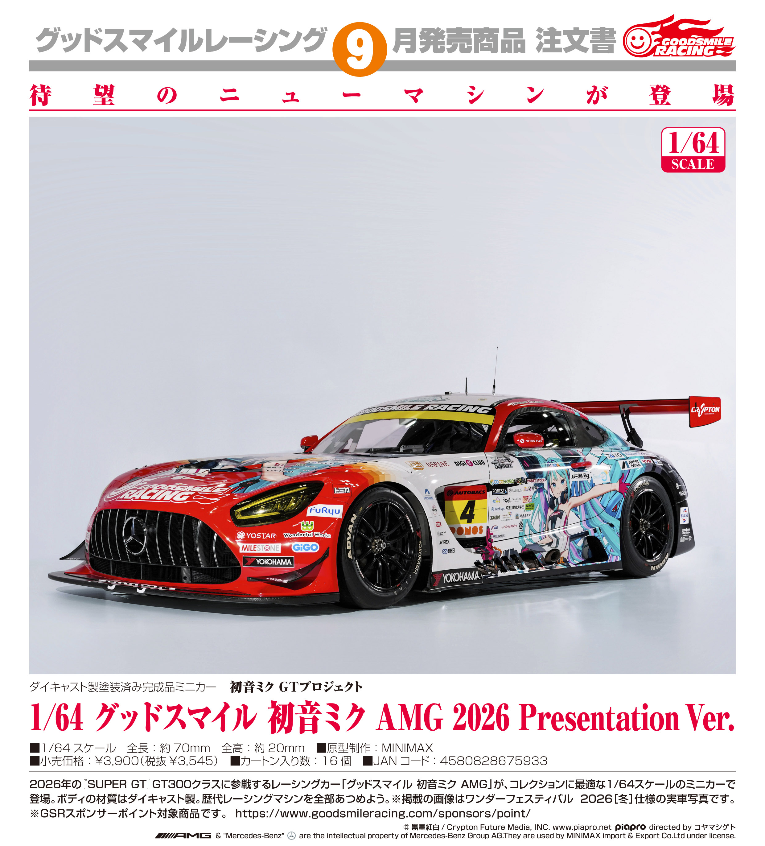 『初音ミク GTプロジェクト』1/64 グッドスマイル 初音ミク AMG 2026 Presentation Ver.