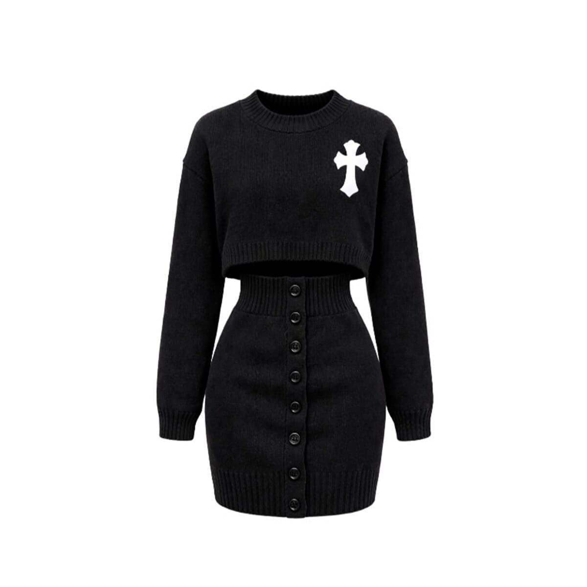 【2点セット】レイヤード風フロントクロスニットワンピース バナーセレクト