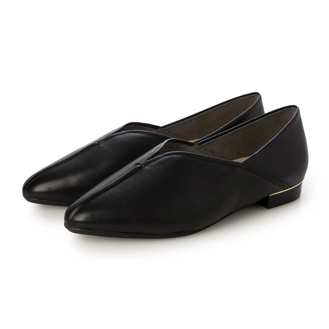 甲とサイドのVカットが足をきれいにみせてくれるフラットシューズ。