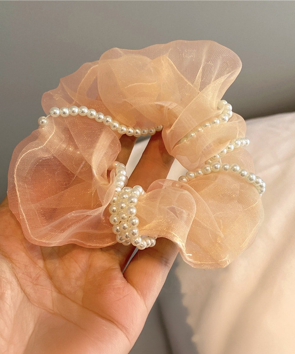 オーガンジー素材にパールをあしらった大人可愛いシュシュです。