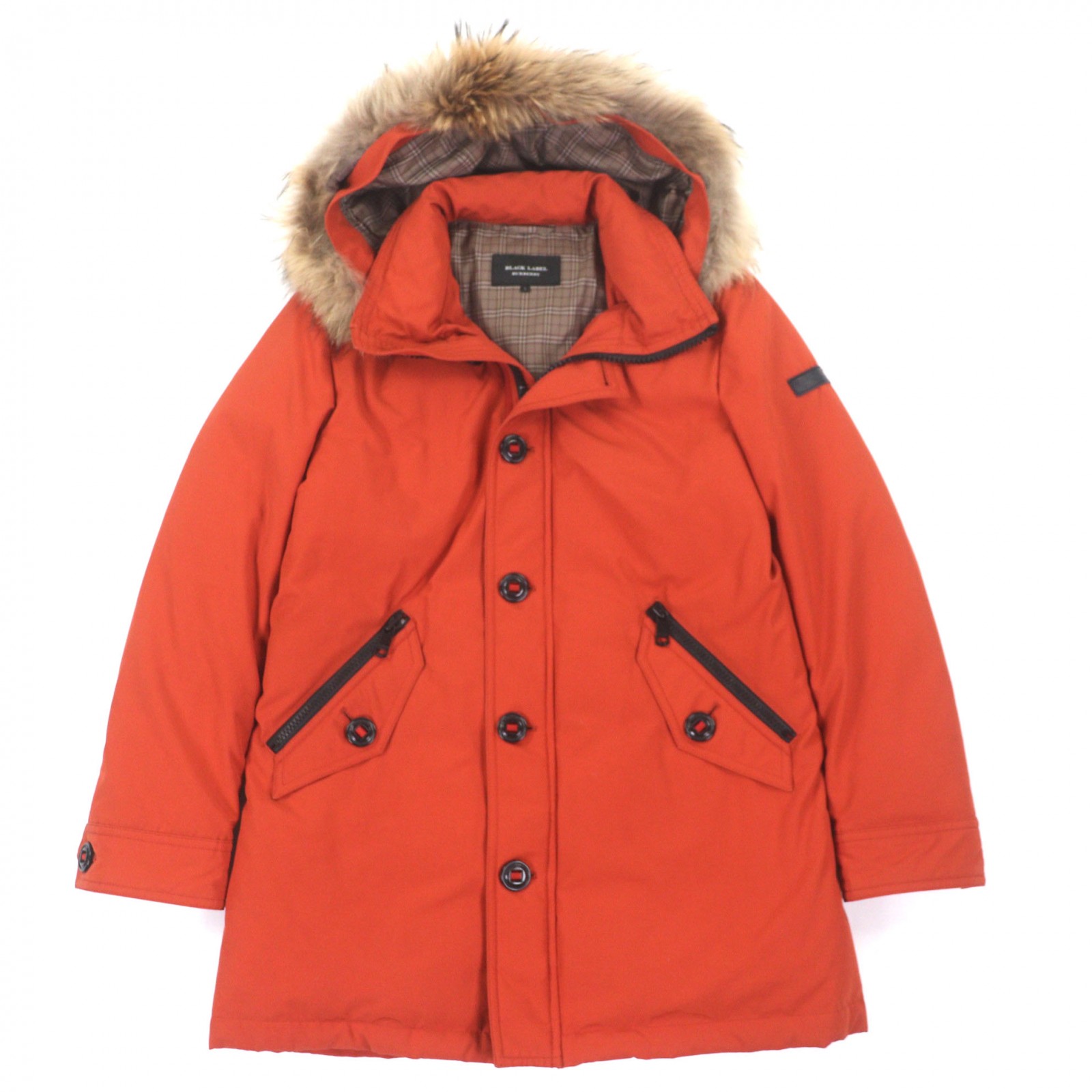 美品▲BURBERRY BLACK LABEL バーバリーブラックレーベル カモフラ 裏チェック 襟ラビットファー ジャケット ブラック L 正規品 メンズ【中古】